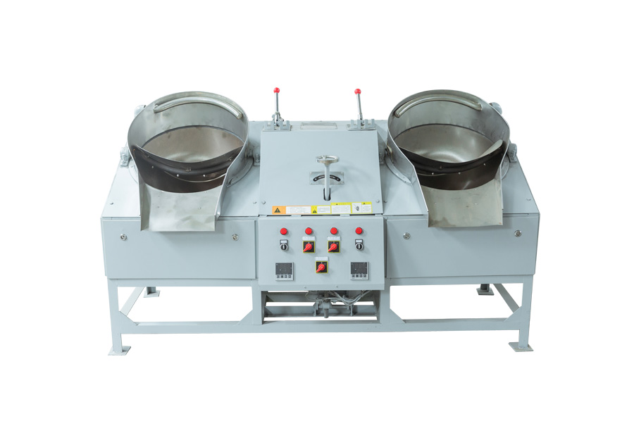 (2)、雙鍋曲毫炒干機適用于各類卷曲型、球型名優(yōu)茶的做型炒制作業(yè)。目前市場上有50、60兩種鑄鐵鍋和壓制鍋兩種,壓制鍋外形更好,但在加熱后易變形,引起抄板和鍋子卡死或間隙變大,從而增加碎茶或炒制茶葉外形不緊,鑄鐵鍋不存在這種現(xiàn)象,我公司一直使用鑄鐵鍋,50型采用掛擋調速、60型采用變頻調速。